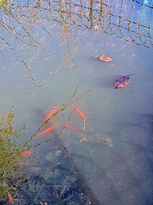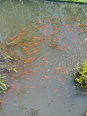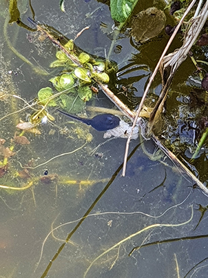 Bild 1: Kaulquappe, Bild 2: Goldrotfedern, Bild 3: Goldrotfedern und Goldfische