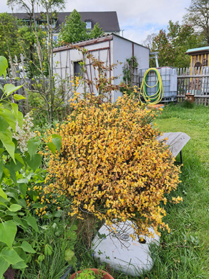 Bild1: gelber Ginster, Bild 2: Maiglöckchen, Bild 3: Apfelbaum