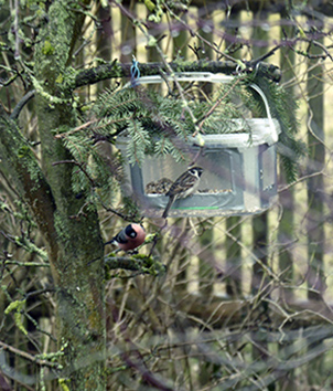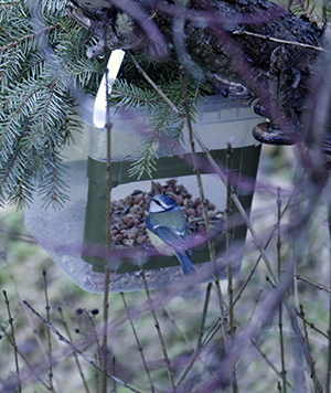 Bild 1: Blaumeise, Bild 2: Gimpel und Sperling, Bild 3: Gimpel
