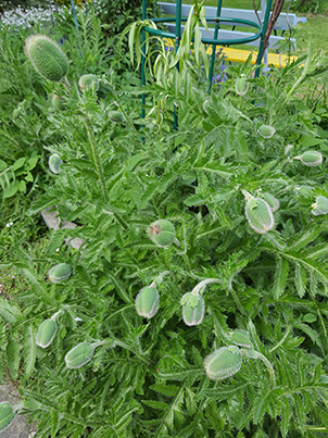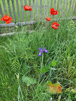 Bild 1: Mohn und Iris, Bild 2: Funkien und Hasenglöckchen, Bild 3: Mohnknospen