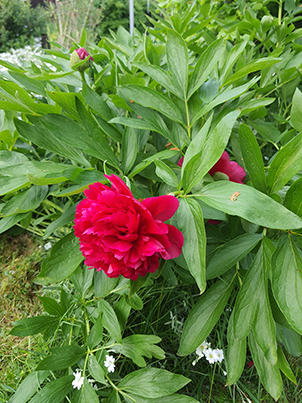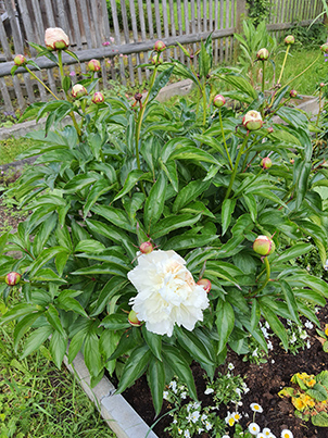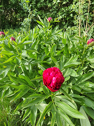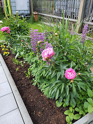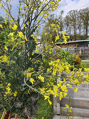 Bild 1: blühender Rosenkohl, Bild 2: Pfingstrose, Bild 3: Froschlöffel und Rohrkolben