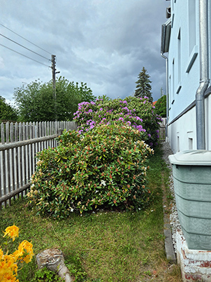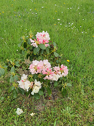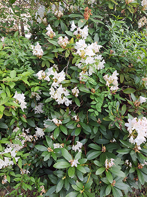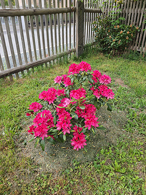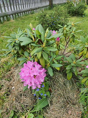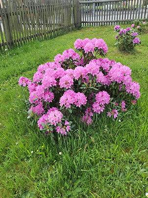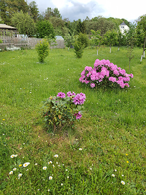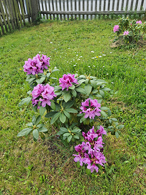 Rhododendren lieben bekanntlich saure Böden. Nach dem vielen Regen der vergangenen Wochen fühlten sich die teilweise schon alten Büsche sichtlich wohl. Auch die kleinen, die wir erst vor vier Jahren pflanzten, erstrahlten in voller Blüte. Den Anfang machen in jedem Jahr die weiß blühenden. Etwas später folgen der gelbe und die rosa und rot blühenden Sträucher. Zuletzt hatten wir uns einen lachsfarbenen gekauft. Auch der blüht in diesem Jahr.